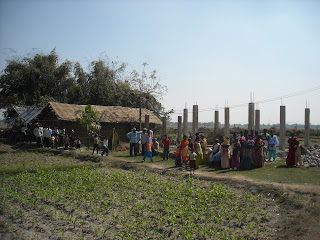 It was a wonderful thing to be part of. The people all greeted us with “Jai messee” which means “praise the Lord!” Ken had the honor of doing the ribbon cutting for the dedication ceremony. Then, we were seated in the front of their building and they all filed in. We were introduced and welcomed by each receiving a rose. A leader at the church shared how this church was a church plant and started in 2000 with four baptized and now they have baptized 275. There are four sister churches nearby. There are 11 families in this village who worship in this church. In 2004, one of the believing families donated land for this church building. It took them two days to build the structure. They will continue to add to it—right now it is just straw and bamboo. They will mix a mud mixture to pack and dry on the walls and roof. The families who worship here hope to invite more locals so their church will continue to grow. Other families are also going to donate more of the surrounding land to expand the church.